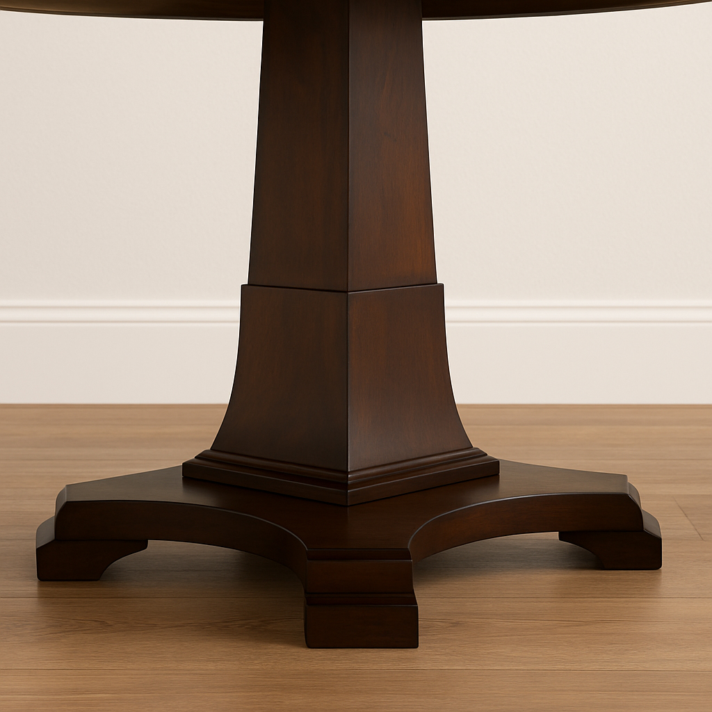 In sum, this single pedestal dining table, handcrafted from solid wood, is a work of art that transcends mere furniture. Its customizability in color, size, solid top or extendable design, and pedestal style make it a versatile centerpiece in a myriad of home designs. Whether nestled in a contemporary urban loft, a cozy cottage, or a grand estate, this table is a testament to the enduring allure of fine craftsmanship and personal style.