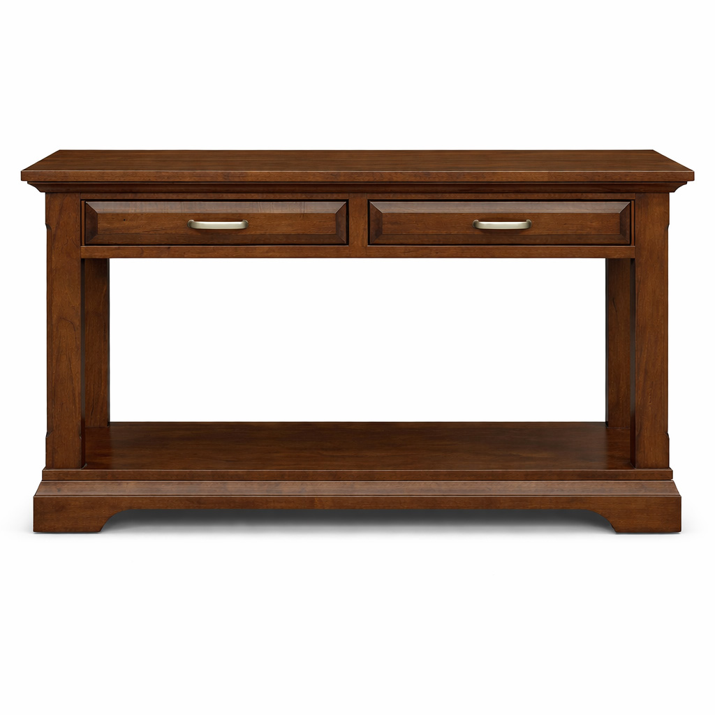 The Chateau Solid Wood Hall Table brings classic elegance to modern spaces with its refined silhouette and warm solid wood craftsmanship. Its smooth rectangular top, gently tapered legs, and rich natural grain create a sophisticated yet welcoming presence behind a sofa or in a hallway. Clean lines and subtle details allow this piece to complement both traditional and contemporary décor. Fully customizable in size, wood species, finish, and hardware, this console table brings enduring style and practical functionality to your home.