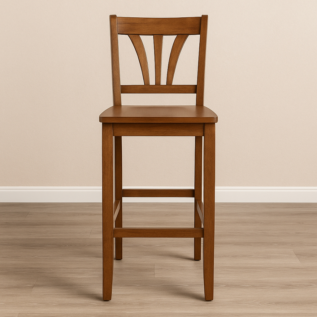 This Cuba solid wood bar stool combines comfort, strength, and elegant design. Handcrafted in Toronto from premium Canadian hardwoods, it features a distinctive flared backrest, supportive seat, and sturdy legs reinforced with crossbars for long-lasting durability.