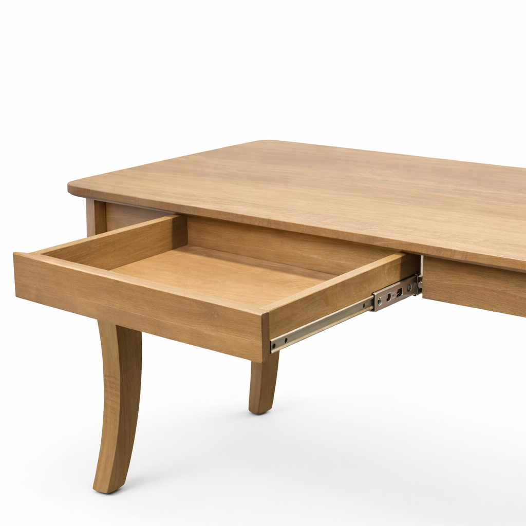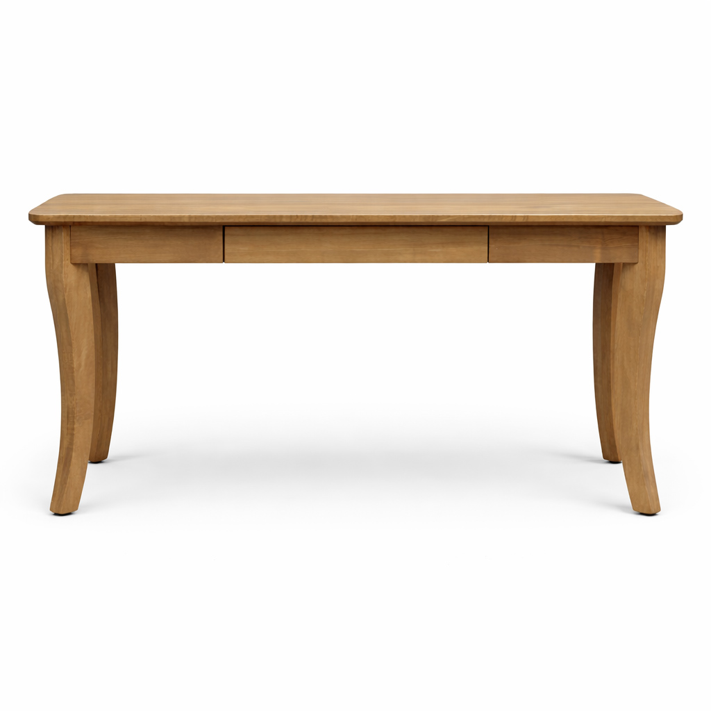 The French Curve Legs Solid Wood Desk combines graceful design with everyday functionality. Crafted from premium solid wood and finished in a warm natural tone, this desk showcases beautifully curved French-style legs that add elegance and character to any space. A smooth-glide center drawer provides convenient storage for office essentials while maintaining a clean, streamlined appearance. With its gently rounded corners and refined silhouette, this desk is perfect for home offices, creative studios, or stylish workspaces seeking timeless charm and durable craftsmanship.