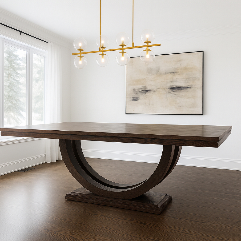 Meet Metro—a solid-wood dining table that blends classic warmth with modern simplicity. Clean lines, a smooth solid top, and a graceful curved pedestal base make it equally at home for everyday meals or special gatherings.
