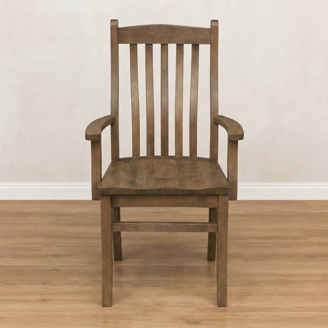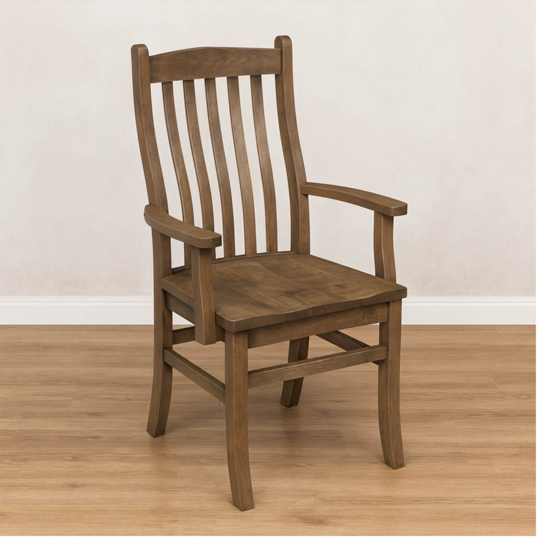 The Mini Contour Solid Wood Arm Chair offers a refined balance of comfort, craftsmanship, and compact modern styling. Featuring a beautifully curved vertical-slat backrest, sculpted hardwood frame, and supportive armrests, this chair delivers excellent ergonomic comfort for everyday dining. The cushioned seat adds softness and warmth, making it ideal for long meals or family gatherings. Handcrafted in Canada from premium hardwoods, the Mini Contour Arm Chair combines durability with clean, contemporary lines that suit modern, transitional, and Mission-inspired interiors. With customizable wood species, finishes, and upholstery options, it’s a stylish, long-lasting addition to any dining room.