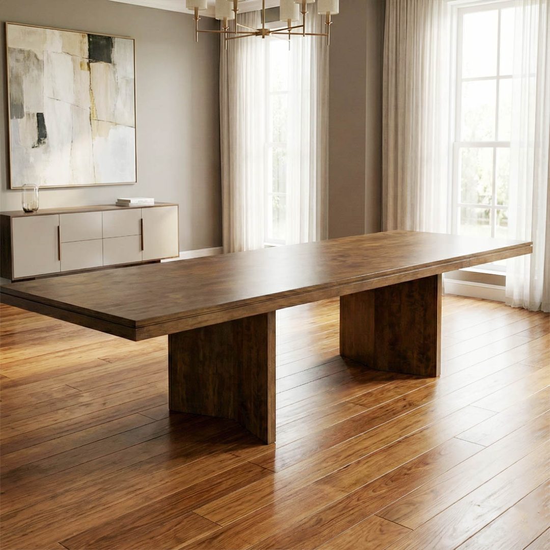 The Monolith Solid Wood Dining Table makes a bold statement with its architectural pedestal base and sleek modern form. Built from premium North American hardwoods, this table is designed for durability, stability, and timeless sophistication. Its clean lines and monolithic base bring a distinctive luxury aesthetic to any dining room.