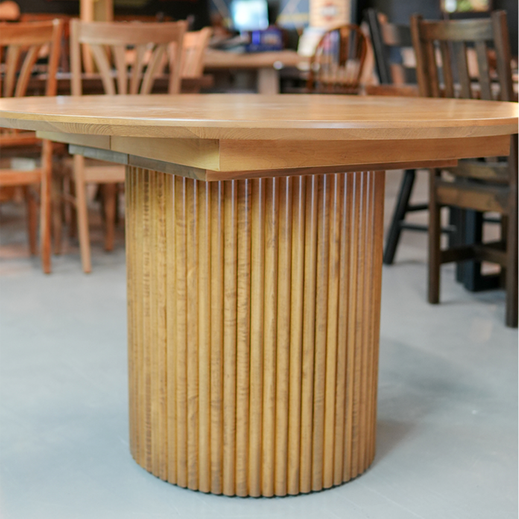 Starting at $3379 Crafted in Wormy Maple in size of 42″ Round Solid Top.