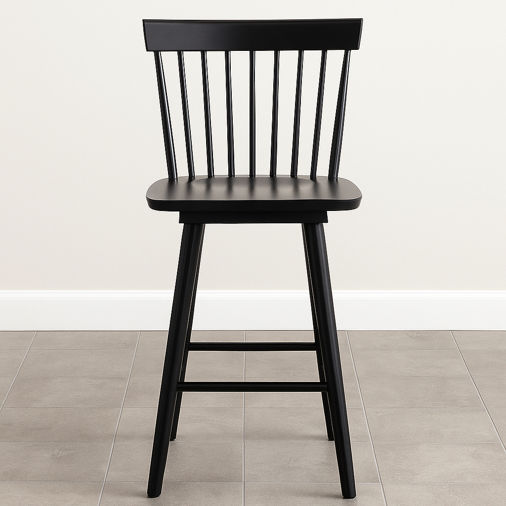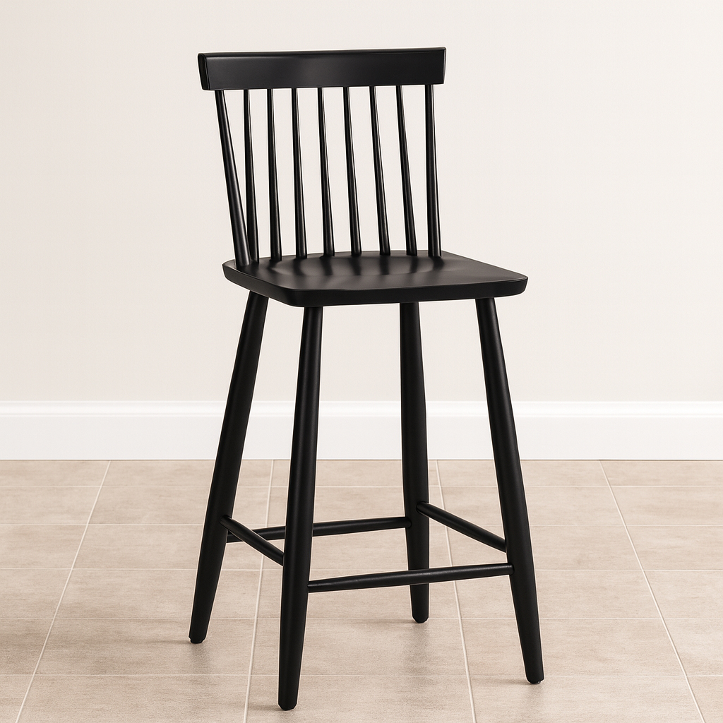 The Shaker Modern Solid Wood Counter Stool blends clean design with handcrafted durability. Inspired by classic Shaker style, it features a tall spindle back for support, a contoured wooden seat for comfort, and tapered legs reinforced with crossbars for stability.