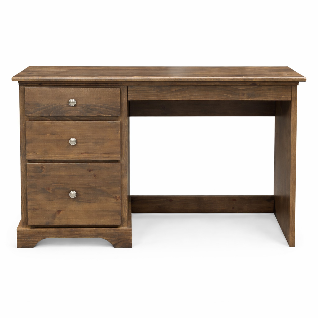 The Marco Solid Wood Student Desk combines simplicity, durability, and practical storage in a compact design ideal for study rooms and bedrooms. Crafted from premium solid wood and finished in a warm natural stain that highlights the grain pattern, this desk features three spacious drawers with sleek round knobs for organized storage. Its sturdy side panel construction and reinforced base provide long-lasting stability, while the clean lines create a timeless look that fits both modern and traditional interiors. Designed for everyday use, the Marco desk offers a functional workspace without compromising on quality.