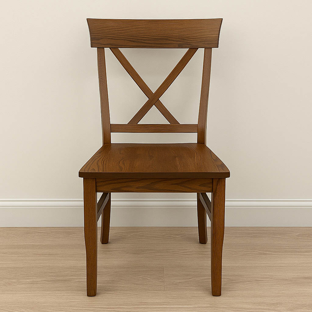 The X-Back Solid Wood Dining Chair brings classic character and everyday comfort to your dining room. Handcrafted from premium hardwood, it features the signature X-shaped backrest that adds both support and visual interest, paired with a comfortable seat ideal for family meals and long gatherings. Straight legs and clean lines keep the look timeless yet versatile, working beautifully in farmhouse, rustic, or transitional interiors. Made to order in Toronto, this chair is fully customizable in wood species, stain colour, finish, and optional upholstered seat. Durable, inviting, and full of charm, it’s a staple piece for any dining space.
